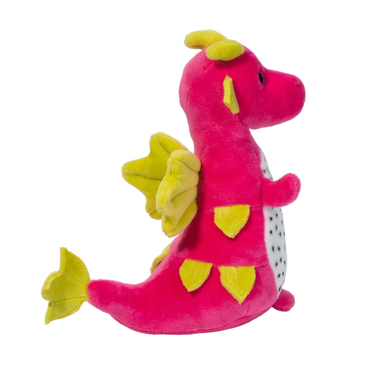The popular Dragon Fruit has been reinterpreted as one of our plush Foodie Macaroons and is just as cute as can be! This sweet Dragon stuffed animal features a bright, magenta pink body, just like the fruit. The yellow green scales that decorate the exterior of these unique fruits can be found as plush accents portraying our Dragon’s horns, wings, and fins. Her round belly mimics the seed-speckled white flesh of the interior of the fruit. Luxurious microfiber materials combined with silky polyester fill make our plush fantasy creature soft and squishable. With her glittery eyes and happy smile, this enchanting Dragon Fruit Macaroon stuffed animal will take your imagination on a wild ride!